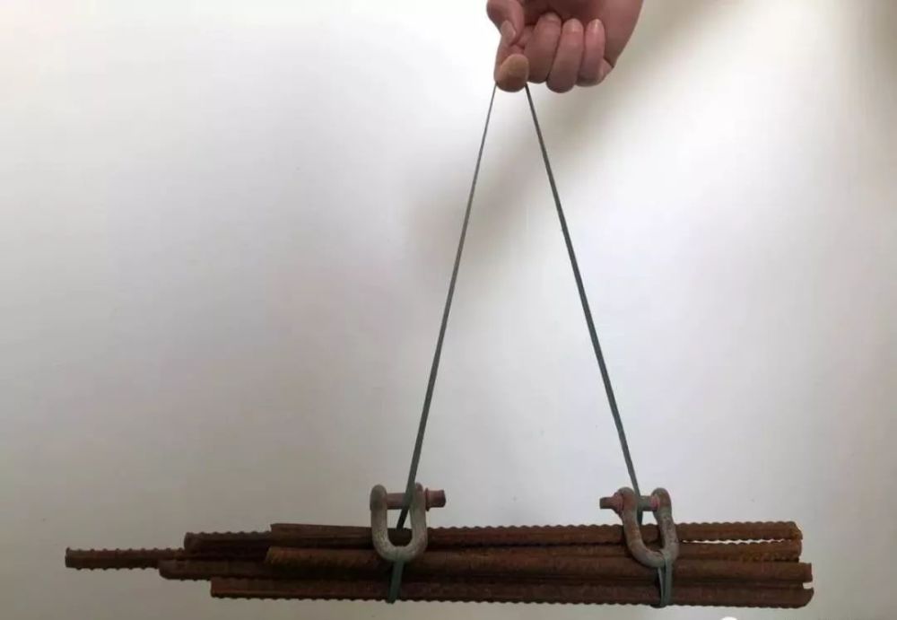 二、卡繩捆綁法:用卡環把吊索卡出一個繩圏,再用繩圈捆綁起吊重物的方法。采用卡繩捆綁法時,一般是把捆綁繩從重物下面穿過,然后再用卡把繩頭和繩子中段卡接起來,繩子的中段在卡環中可以自由竄動,當捆綁繩受力之后,繩圈在捆綁點處對重物有一束緊的力,當重物達到垂直的程度后,捆綁繩在重物的表面就不會滑,