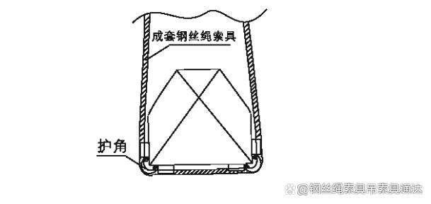 4、成套鋼絲繩索具過尖銳棱角時,會使鋼絲繩提前斷絲或繩芯露出,應加護套保護。