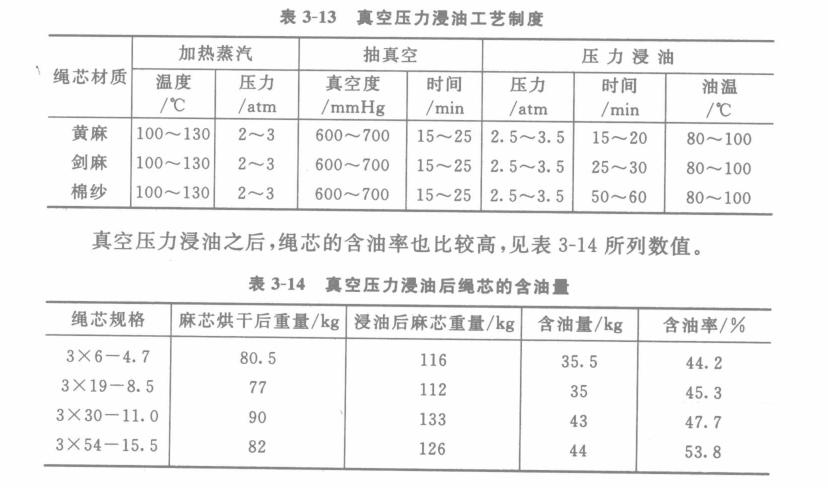 壓力浸油和真空干燥一般是同時進行的。這種方式就稱為真空壓力浸油。其工藝制度見表3-13。