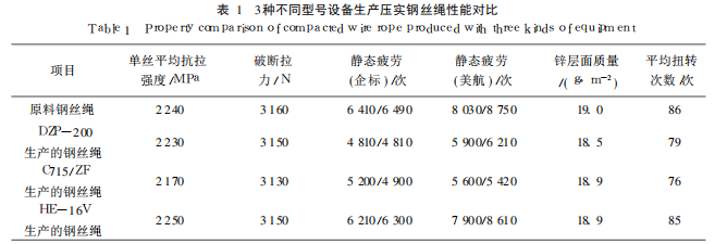 19M等不同結(jié)構(gòu)、規(guī)格的鋼絲繩進(jìn)行鍛打試驗(yàn),并對(duì)比破斷拉力、疲勞性能、表面質(zhì)量等性能,結(jié)果證實(shí),采用HE-16V設(shè)備生產(chǎn)的鍛打鋼絲繩與715/F DZP-200生產(chǎn)的鋼絲繩相比,各項(xiàng)指標(biāo)均具有較大的優(yōu)勢(shì),最終決定引進(jìn)德國(guó)HE-16V旋鍛機(jī)進(jìn)行研發(fā)、生產(chǎn)。