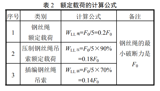 吊索具中鋼絲繩額定載荷與該吊索具的額定載荷是有區別的,應注意區分。吊索具的結構型式和鋼絲繩的最小破斷拉力決定了兩倍額定載荷的額定拉力試驗時最終試驗數值。